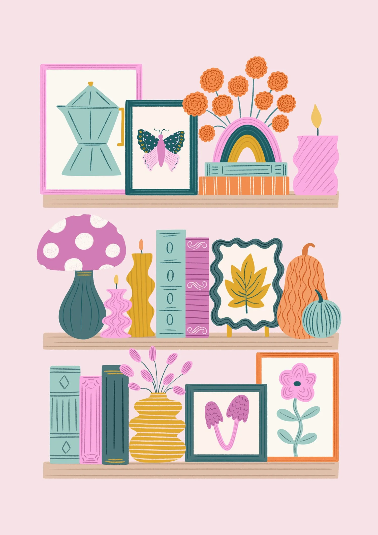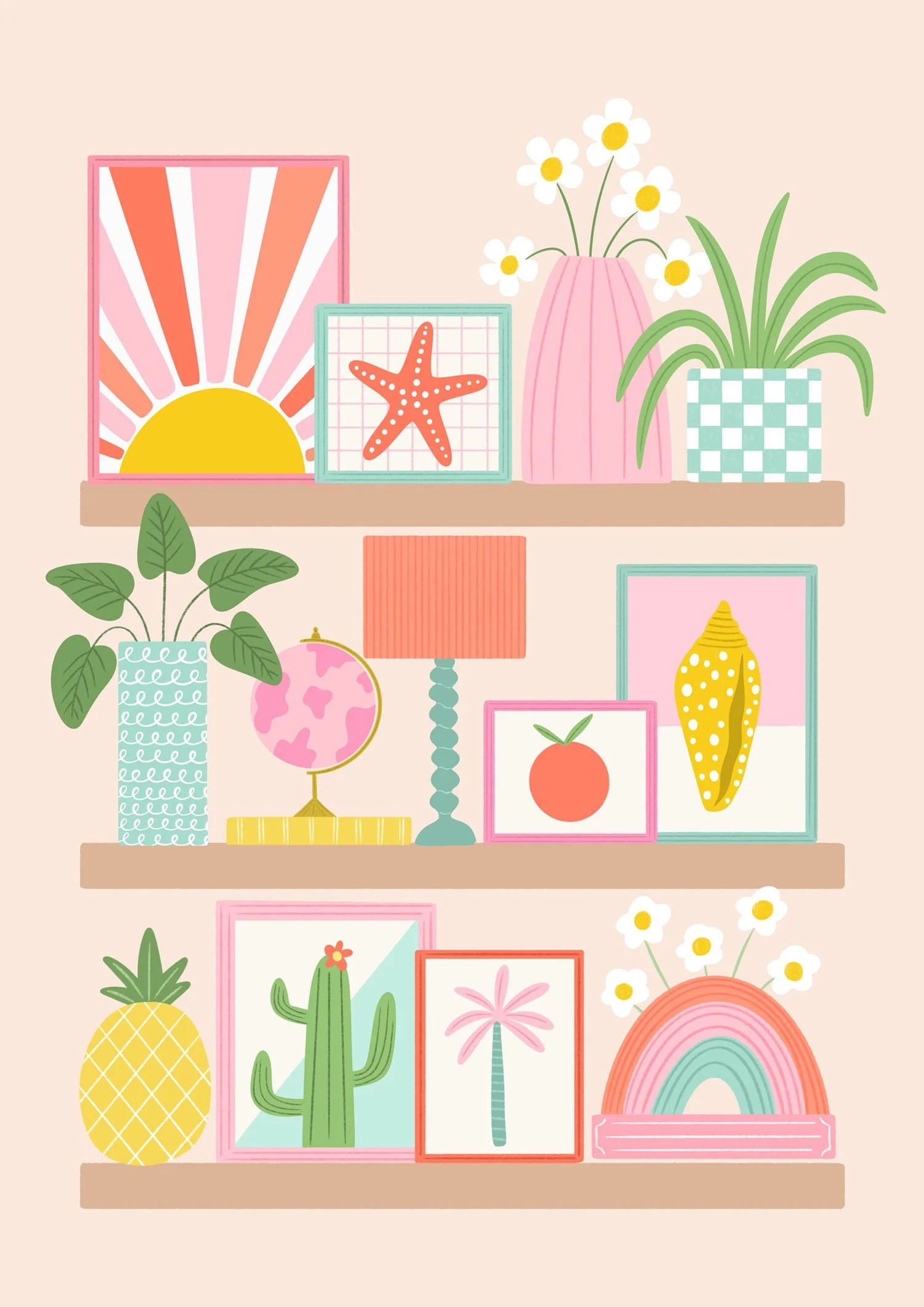 A bright, playful and colourful collection inspired by the changing seasons, featuring decorative shelves and stylised objects